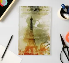 Le célèbre symbole de Paris, la Tour Eiffel, dans un design très moderne. Œuvre artistique avec des éléments typographiques.
