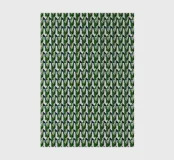 L'image présente un motif géométrique complexe et répétitif avec des formes imbriquées les unes dans les autres. Un mélange de vert, de noir et de blanc domine la composition, créant un effet visuellement dynamique.