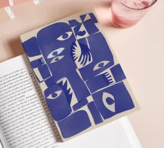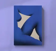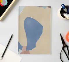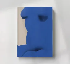 Une forme abstraite bleue audacieuse domine le centre d'un fond rose texturé. La forme n'est pas clairement définie, ce qui suggère une conception spontanée ou non planifiée.