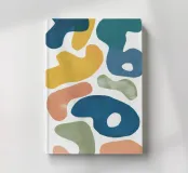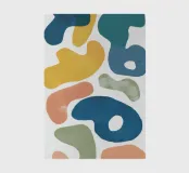 Une collection de formes lisses et abstraites, semblables à des galets, dans une palette agréable de blanc, de jaune, de sarcelle et de bleu, créant un motif ludique et moderne, à la fois organique et graphique.