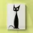 Illustration minimaliste en noir et blanc d'un chat noir aux lignes épurées, aux yeux exagérément écarquillés et aux traits esquissés. Le design fantaisiste et abstrait du chat ajoute une touche ludique et artistique.