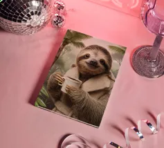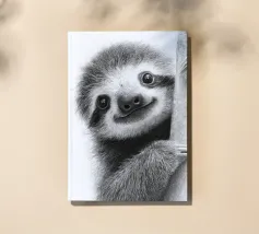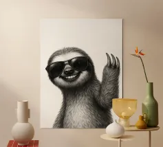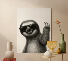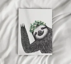 Ce croquis de paresseux joyeux affiche un sourire cool tout en faisant un signe de la main dans des tons sombres. Apporte des vibrations ludiques, de l'humour et de la positivité à toute âme décontractée qui aime vivre lentement et s'amuser avec sarcasme.