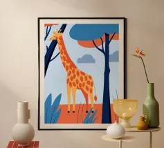 Profitez d'une illustration colorée de la nature représentant une araignée dans sa toile entourée de feuilles. Avec ses couleurs vibrantes et son design unique, cette œuvre d'art apportera une touche de nature et de flair artistique à votre espace.