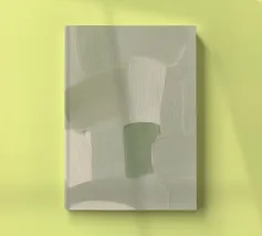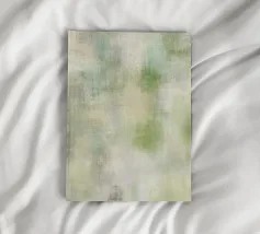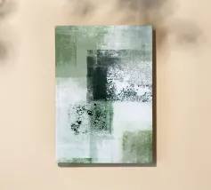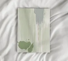 Peinture acrylique avec des coups de pinceau en blanc sur un fond vert sauge et vert olive.