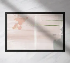 Coups de pinceau abstraits à l'aquarelle dans des tons pastel de vert, de gris et d'une touche de rose.