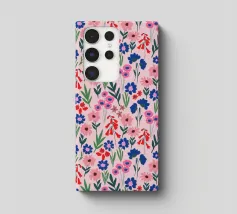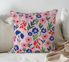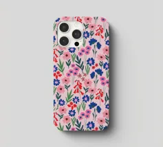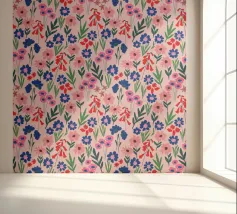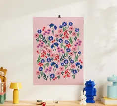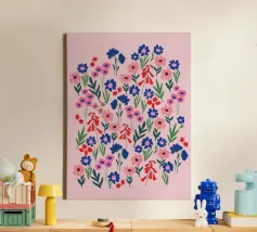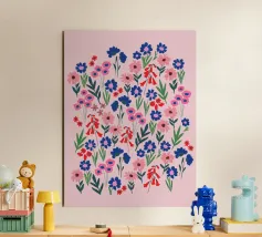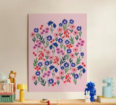 Illuminez votre journée avec des fleurs joyeuses en rose, bleu et rouge - Art peint à la main par Petra Lang