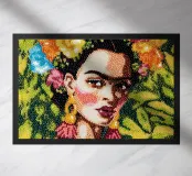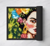 Découvrez Frida Kahlo réimaginée dans cette extraordinaire affiche d'art texturée, qui rappelle un travail à l'aiguille ou un perlage complexe. Ce portrait unique représente Frida avec son mono-sourcil emblématique et son regard intense, rendu avec un aspect tactile fascinant créé par d'innombrables petits éléments vibrants. Sa coiffe florale élaborée éclate avec des fleurs colorées en rose, bleu, orange et jaune, sur un riche fond vert feuillu. Cette œuvre d'art numérique de haute qualité, méticuleusement réalisée à 7000x5000 pixels en 300 dpi, offre des détails époustouflants et une expérience visuelle vraiment unique, parfaite pour une exposition.