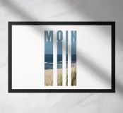 Un design aussi frais que l'air de la mer du Nord ! 🌊 Ce motif MOIN minimaliste présente le salut typique du nord de l'Allemagne avec une magnifique image de plage et de mer en arrière-plan - parfait pour tous ceux qui aiment les sensations de la côte.