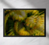 Une image d'un motif abstrait et dynamique dans les couleurs jaune, vert et blanc.