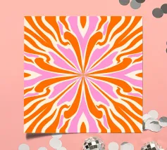 Transformez votre espace avec cette œuvre d'art abstraite et symétrique, composée de pétales radiaux vibrants dans un design psychédélique hypnotique. Inspiré par l'esthétique rétro et imprégné d'un charme moderne, cet objet d'art allie symétrie florale et énergie solaire audacieuse, créant ainsi une œuvre d'art visuellement captivante. La composition circulaire et les détails accrocheurs sont parfaits pour ceux qui aiment l'art moderne avec une touche nostalgique et rétro.