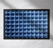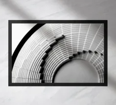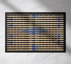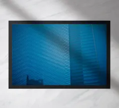 Cette macrophotographie montre un composant électronique avec des ailettes de refroidissement marquantes, alignées avec une grande précision géométrique et réalisées en métal brillant. La surface structurée révèle un motif de grille qui ne sert pas uniquement à des fins fonctionnelles, mais qui rappelle aussi, sur le plan esthétique, les sculptures modernistes. La tonalité bleutée souligne le caractère technique et confère à l'image une atmosphère futuriste. Les lignes claires et les répétitions rythmiques reflètent la précision de fabrication industrielle,