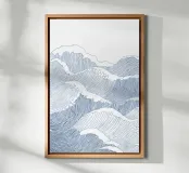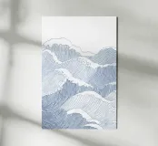 Découvrez la beauté sereine de cette illustration minimaliste de l'océan qui présente d'élégantes lignes de vagues bleues. Parfaite pour ajouter une touche de tranquillité à n'importe quel espace, cette œuvre d'art capture le flux rythmique de la mer avec des détails de lignes complexes et une palette de couleurs apaisantes.