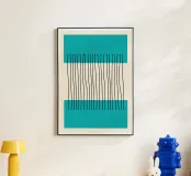 Une affiche abstraite équilibrée et minimaliste utilisant des contrastes marqués et une géométrie simple. La composition comprend deux blocs horizontaux de sarcelle profonde en haut et en bas, encadrant une bande centrale de blanc cassé. Les trois sections sont recouvertes d'un motif répétitif de fines lignes verticales noires, délibérément inégales et dessinées à la main. Ce motif oppose astucieusement les couleurs géométriques strictes à l'irrégularité organique des lignes, créant ainsi une esthétique classique inspirée de la modernité du milieu du siècle et du Bauhaus. Ce téléchargement numérique de haute qualité (7000x5000 pixels, 300 dpi) garantit une image nette et moderne.