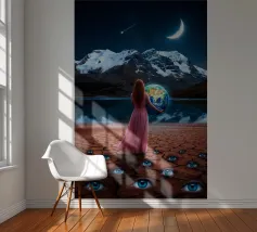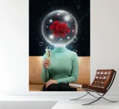 Cette œuvre d'art numérique surréaliste allie élégance, mystère et imagination dans un récit visuel saisissant. Un personnage sans visage est assis calmement tandis qu'une bulle cosmique transparente remplace la tête, révélant des roses rouges vibrantes flottant dans une galaxie d'étoiles, d'éclats de lumière et de scintillements oniriques. La coupe de champagne ajoute une touche de luxe et de célébration, symbolisant la beauté intérieure, l'amour et l'émotion raffinée. Parfaite pour les intérieurs modernes, cette œuvre d'art convient aux salons, aux chambres à coucher, aux salles de séjour et aux espaces créatifs.