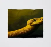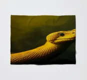 Le python jaune vif présente des écailles complexes et une expression curieuse, mettant en valeur son élégance dans un environnement faiblement éclairé qui rehausse ses couleurs vives.