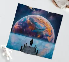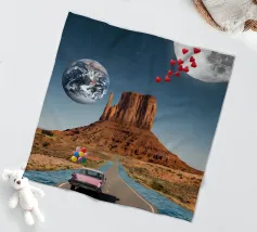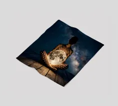 Découvrez la magie du voyage et du ciel nocturne grâce à cette œuvre d'art atmosphérique représentant une main qui touche délicatement le hublot d'un avion surplombant des dunes désertiques rougeoyantes. Un croissant de lune brille dans un ciel bleu profond rempli d'étoiles, créant un mélange serein d'errance et d'émerveillement. Les sables chauds et dorés contrastent magnifiquement avec les tons frais de la nuit, capturant le sentiment de solitude, de réflexion et de rêve au-dessus du monde. Parfait pour les amateurs de voyages, les minimalistes et les fans d'art cinématographique et de vues de fenêtre rêveuses.