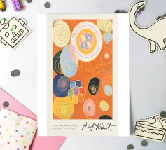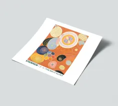 Groupe IV, n° 3. The Ten Largest, Youth est l'une des toiles monumentales de la série visionnaire The Ten Largest, créée par Hilma af Klint en 1907. Cette œuvre de plus de trois mètres de haut représente la phase de la jeunesse dans son exploration symbolique du cycle de la vie humaine. La peinture regorge de formes tourbillonnantes, de motifs botaniques, de lignes en boucle et de symboles flottants rendus dans des bleus doux, des oranges chauds et des blancs lumineux. Af Klint mêle abstraction et géométrie spirituelle, exprimant la vitalité, la croissance et l'expansivité émotionnelle de la jeunesse. Son langage abstrait d'avant-garde, créé des années avant l'arrivée de l'artiste, est une source d'inspiration pour les artistes.