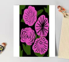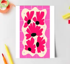 Plongez dans un monde d'abstraction fantaisiste avec cette captivante impression d'art "Blob Flower". Le motif représente une grande fleur stylisée aux pétales irréguliers et organiques dans des tons vibrants de rose et d'orange, rayonnant à partir d'une tache centrale bleue. Entourée de formes abstraites complémentaires plus petites et de contours subtils, l'œuvre dégage une énergie ludique, fluide et nettement psychédélique. Cette impression est parfaite pour ajouter une touche d'intrigue artistique et de charme rétro à tout espace contemporain ou éclectique. Cet art numérique de haute qualité est présenté dans une résolution étonnante de 7000x5000 pixels à 300 dpi, ce qui permet à l'artiste de s'approprier l'œuvre d'art.