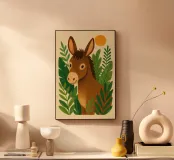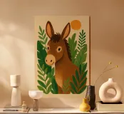 Ce charmant poster représente un doux âne entouré de feuillage sur un fond chaud et apaisant. Avec son aspect naturel et ses couleurs douces, il apporte une atmosphère calme mais vivante dans la chambre d'enfant.