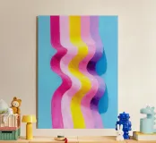 Art abstrait de la vague en rose, jaune & bleu plexiglas