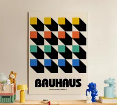 Description du produit : Ce design dynamique combine l'effet puissant des formes géométriques avec une palette de couleurs vives de jaune, rose et bleu. Les motifs cubiques semblent flotter en trois dimensions grâce à leur disposition contrastée et à la couleur sombre du fond, ce qui crée un look hypnotique et moderne. Le slogan "BE BOLD - From Another Point of View" souligne le caractère audacieux du design et invite à adopter de nouvelles perspectives. Détails : Style de design : Moderne, géométrique et visuellement attrayant. Palette de couleurs : Couleurs primaires vives.