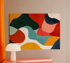 Une composition abstraite audacieuse définie par des formes organiques et une palette de couleurs corail vives. Des rouges chauds, des tons neutres doux et des accents contrastés profonds créent un rythme visuel dynamique et harmonieux. Cette œuvre d'art apporte énergie et élégance contemporaine à n'importe quel espace, ce qui en fait une pièce maîtresse idéale pour les intérieurs modernes, créatifs ou minimalistes.