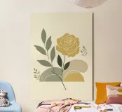 Dessin au trait minimaliste d'une rose jaune plexiglas