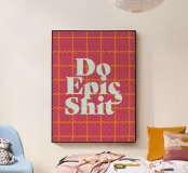 Faites-vous remarquer avec cette citation amusante et audacieuse "Do Epic Shit" (Faites des conneries épiques). Une typographie vibrante sur un fond moderne à carreaux.