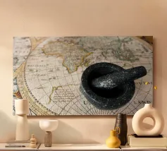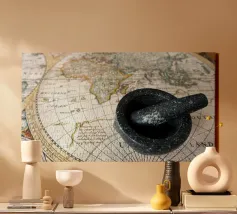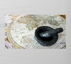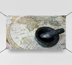 La route des épices. Une carte ancienne du monde connu à l'époque, datant d'environ 1500, montrant les continents concernés par le commerce des épices.