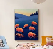 Illustration de "Fermes à moutons" : La beauté apaisante de la campagne ! Ce dessin représente une paisible ferme d'élevage de moutons, avec d'adorables détails de moutons et un magnifique paysage.