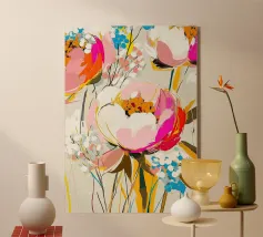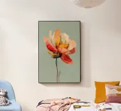 Exploration délicate de la couleur, de la forme et de la transparence, "Floral Study" présente une fleur stylisée rendue dans des tons pastel superposés de corail, d'ocre et de blush. La composition équilibre fluidité et structure, évoquant à la fois la fragilité et la résistance des formes naturelles. Avec son arrière-plan minimal et son sujet centré, la pièce offre une expérience visuelle sereine, presque méditative, idéale pour les intérieurs calmes et modernes.