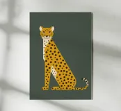 Guépard assis dans un style géométrique épuré. Un ocre chaud avec des points sombres sur un vert calme crée un look moderne et intemporel. Minimaliste et élégant pour le salon, l'espace de travail et la chambre d'enfant, en solo comme déclaration ou dans une petite galerie de safari.