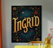 Ingrid (« belle - aimée »). Un prénom populaire qui n'est pas seulement orné de fleurs, mais qui réjouit aussi les yeux.
