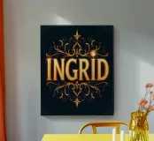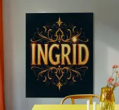 Ingrid (« belle - aimée »). Un prénom populaire qui n'est pas seulement orné d'une forte décoration, mais qui réjouit aussi les yeux.