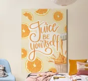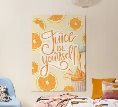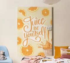 Une citation drôle et amusante avec de délicieux jus et oranges. Juice be yourself ! Citation motivante.