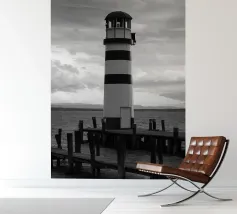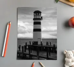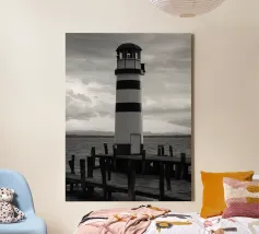 Phare sur un quai en bois près de l'océan