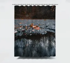 Reflet dans une petite flaque d'eau d'arbres maigres à la fin de l'automne.