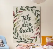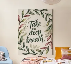 Une douce invitation à faire une pause et à se reconnecter. Entouré d'un doux feuillage aquarellé, cet imprimé apaisant offre un simple rappel : "Respirez profondément". Une œuvre parfaite pour les chambres à coucher, les espaces de yoga ou tout autre lieu de paix.