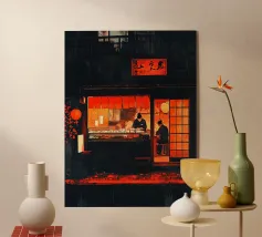 Le dessin "Snacktime" montre un charmant monstre qui mange dans un izakaya japonais classique en banlieue. Avec des éléments d'aquarelle et inspiré de l'ukiyo-e, c'est un regard humoristique sur la culture japonaise - parfait pour les fans d'art créatif et unique !