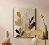 A gentle arrangement of botanical shapes in earthy neutrals, charcoal, and soft gold. This composition balances organic delicacy with modern simplicity, perfect for elevating calm, curated interiors with its understated charm.