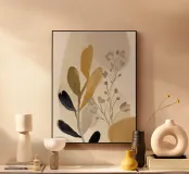 Une douce composition de formes botaniques dans des tons neutres, anthracite et or doux. Cette composition allie la délicatesse organique à la simplicité moderne, parfaite pour rehausser les intérieurs calmes et soignés grâce à son charme discret.