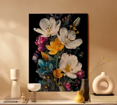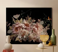 KI Structure Photo d'un bouquet de fleurs avec un fond noir. La photo est super en tant que poster ou tableau de toile avec des fleurs dans ta maison