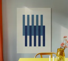 Une affiche abstraite équilibrée et minimaliste utilisant des contrastes marqués et une géométrie simple. La composition comprend deux blocs horizontaux de sarcelle profonde en haut et en bas, encadrant une bande centrale de blanc cassé. Les trois sections sont recouvertes d'un motif répétitif de fines lignes verticales noires, délibérément inégales et dessinées à la main. Ce motif oppose astucieusement les couleurs géométriques strictes à l'irrégularité organique des lignes, créant ainsi une esthétique classique inspirée de la modernité du milieu du siècle et du Bauhaus. Ce téléchargement numérique de haute qualité (7000x5000 pixels, 300 dpi) garantit une image nette et moderne.