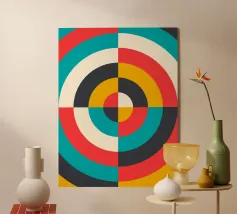 Fusion dynamique de couleurs et de mouvements, "Vibrant Vortex" attire le regard dans un tourbillon numérique hypnotique de précision géométrique. L'interaction audacieuse des teintes rouges, bleues et jaunes crée un sentiment d'énergie et de transformation, ce qui en fait une pièce d'apparat frappante pour tout espace moderne.