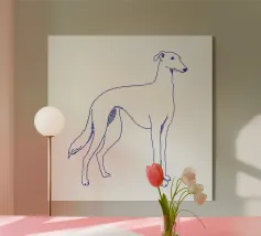 Voici Alan, avec sa silhouette élancée. Sa tête, perchée en hauteur, laisse entrevoir des sprints secrets et une curiosité nerveuse. Il a les oreilles décollées en pleine écoute, tandis que ses pattes allongées lui confèrent une grâce un peu maladroite et adorable. La fourrure monochrome d'Alan et son attitude droite reflètent à la fois sa douceur et sa loyauté - un charmant compagnon pris au milieu d'une attente impatiente !