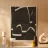 Composition abstraite composée de courbes et de lignes noires qui se chevauchent sur un fond beige. Le dessin joue sur les contrastes et les formes géométriques pour créer un équilibre entre le mouvement et l'immobilité.