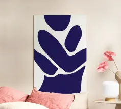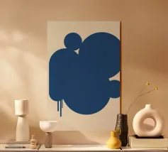 Une composition abstraite à la fois audacieuse et apaisante, composée de deux formes organiques et fluides de couleur marine sur un fond neutre et doux. Les formes douces et fluides créent un sentiment d'équilibre et de mouvement, rendant cette pièce à la fois saisissante et méditative. Son design minimaliste convient parfaitement aux intérieurs modernes, scandinaves et contemporains, ajoutant une touche d'élégance artistique à n'importe quel espace. Idéal pour l'art mural, les posters, la décoration d'intérieur, etc.