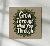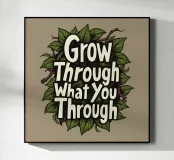 Cette œuvre d'art inspirante présente la phrase "Grow Through What You Go Through" (Grandir grâce à ce que vous traversez) entourée d'un feuillage vert luxuriant. Elle rappelle avec force que les défis et les obstacles peuvent être des opportunités de croissance et de transformation. Les couleurs vives et le style dessiné à la main créent une œuvre visuellement attrayante et stimulante qui ajoutera une touche de positivité à n'importe quel espace.
