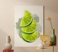 A stylized green lime slice with bold, clean lines stands out against a lighter green background. The simple design emphasizes the segments and rind of the lime.