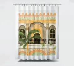 Ce poster artistique montre la façade d'un riad traditionnel à Marrakech, capturée dans des tons chauds de terre et de douces couleurs d'aquarelle. Des éléments architecturaux orientaux tels que des arcs en fer à cheval, des balcons en fer filigranés et des carreaux décoratifs confèrent à l'image un charme authentique. Des palmiers au premier plan complètent la scène et apportent une touche d'exotisme à chaque foyer. Idéal pour les amoureux du voyage, de l'art et de l'esthétique marocaine.